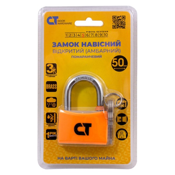 Замок навісний Comit 50 мм відкритий (амбарний) 3кл помаранчевий